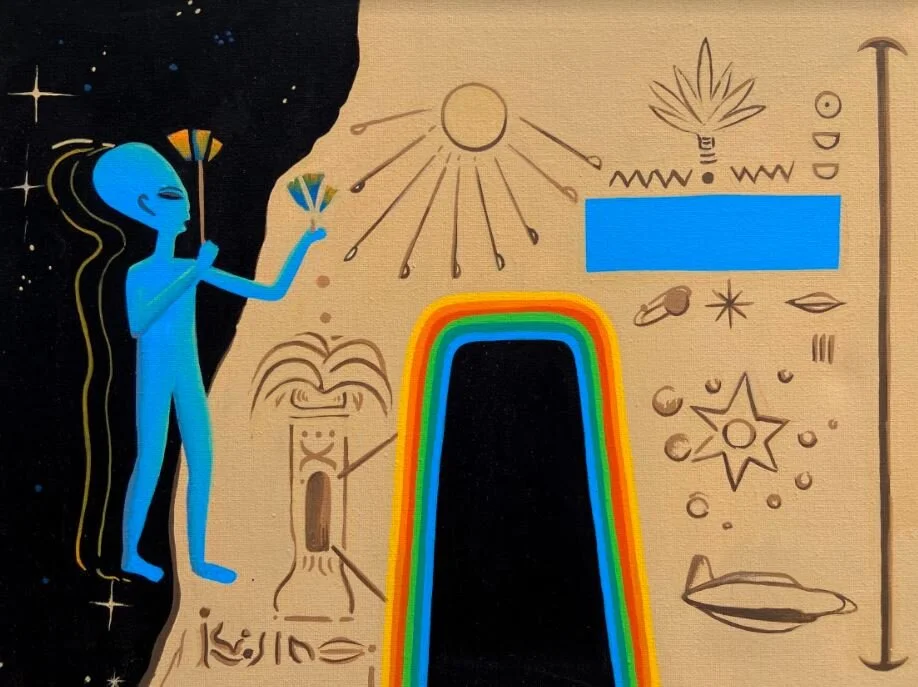sun ra 7 x 10 cm acrylic paint on canvas pannelsold